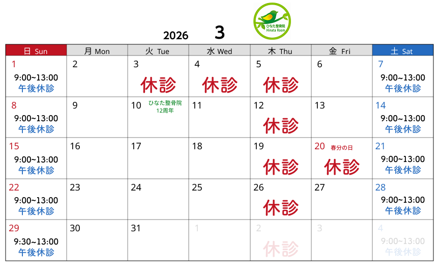 ※土日祝は午前診療のみとなります。